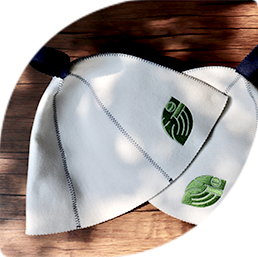 湯こもりの杜オリジナルデザイン。熱から頭部を守りながら、スタイルにも彩りを添えます。