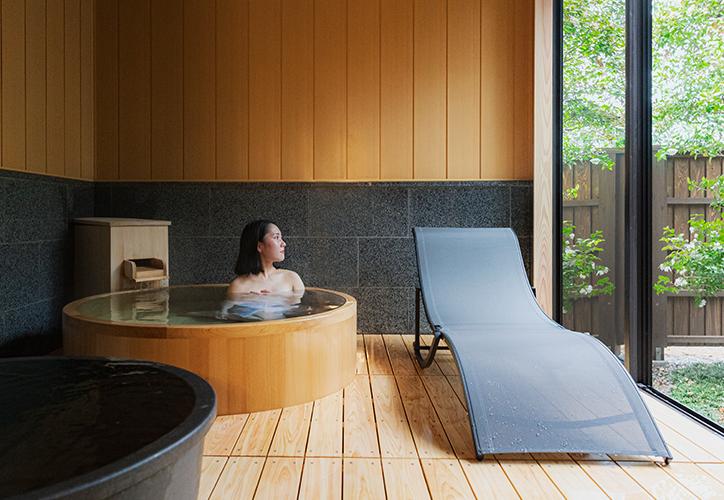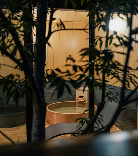 離れの空間、サウナ、そして美肌湯が重なり合う、ここでしか体験できない特別なひとときを。